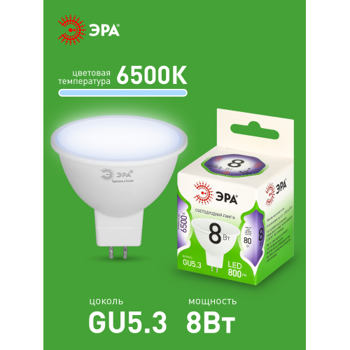 Светодиодная лампа ЭРА LED MR16-8W-865-GU5.3 GL серии Green Line — современный и энергоэффективный источник света. Лампочка мощностью 8 Вт с цоколем GU5.3 излучает холодный белый свет (6500K) без мерцания. Форма MR16 с отражателем обеспечивает направленный световой поток и идеально подходит для акцентного и основного освещения: в точечных светильниках, трековых системах, витринах и подвесных конструкциях. Потребляет минимум энергии, не нагревается, устойчива к перепадам напряжения и обеспечивает стабильное свечение. Работает от сети 220 В, эквивалентна 80 Вт лампе накаливания. Отличное решение для дома, офисов, магазинов, кафе и гостиниц.