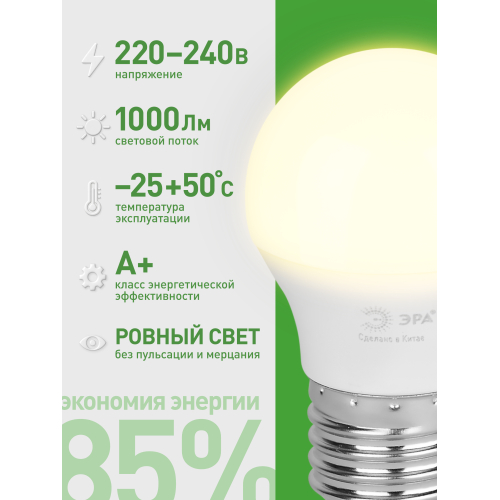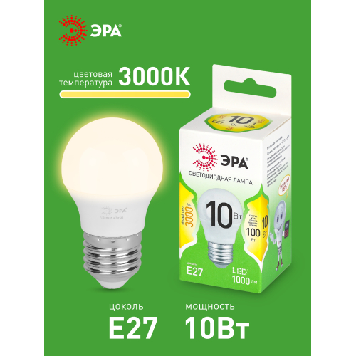 Светодиодная лампа ЭРА LED P45-10W-830-E27 GL серии Green Line — компактный и энергоэффективный источник света. Лампочка мощностью 10 Вт с цоколем E27 излучает теплый белый свет (3000K), создавая комфортное и равномерное освещение. Высота лампы: 80 мм. Форма P45 (шар) и небольшой размер делают её отличным выбором для настольных ламп, бра, торшеров и декоративных светильников. Отличается низким энергопотреблением, долгим сроком службы и устойчивостью к перепадам напряжения. Работает от сети 220 В, эквивалентна 100 Вт лампе накаливания. Обеспечивает стабильное свечение без мерцания, идеально подходит для дома, гостиниц, кафе и коммерческих помещений.