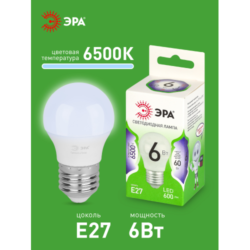 Светодиодная лампа ЭРА LED P45-6W-865-E27 GL серии Green Line — компактный и энергоэффективный источник света. Лампочка мощностью 6 Вт с цоколем E27 излучает холодный белый свет (6500K), создавая комфортное и равномерное освещение. Высота лампы: 80 мм. Форма P45 (шар) и небольшой размер делают её отличным выбором для настольных ламп, бра, торшеров и декоративных светильников. Отличается низким энергопотреблением, долгим сроком службы и устойчивостью к перепадам напряжения. Работает от сети 220 В, эквивалентна 60 Вт лампе накаливания. Обеспечивает стабильное свечение без мерцания, идеально подходит для дома, гостиниц, кафе и коммерческих помещений.