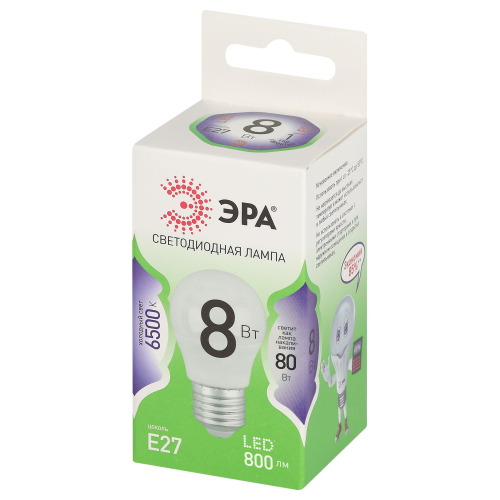 Светодиодная лампа ЭРА LED P45-8W-865-E27 GL серии Green Line — компактный и энергоэффективный источник света. Лампочка мощностью 8 Вт с цоколем E27 излучает холодный белый свет (6500K), создавая комфортное и равномерное освещение. Высота лампы: 80 мм. Форма P45 (шар) и небольшой размер делают её отличным выбором для настольных ламп, бра, торшеров и декоративных светильников. Отличается низким энергопотреблением, долгим сроком службы и устойчивостью к перепадам напряжения. Работает от сети 220 В, эквивалентна 80 Вт лампе накаливания. Обеспечивает стабильное свечение без мерцания, идеально подходит для дома, гостиниц, кафе и коммерческих помещений.