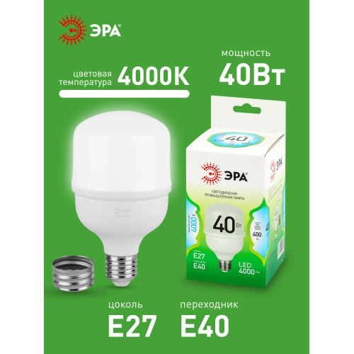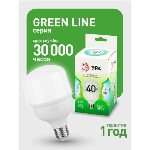 Светодиодная лампа ЭРА LED POWER T80-40W-840-E27/E40 GL серии Green Line — универсальный и энергоэффективный источник света. В комплекте предусмотрен сменный цоколь Е40, что позволяет использовать лампочку в различных помещениях. Цветовая температура 4000К излучает нейтральный белый свет без мерцаний. Высота лампы: 140 мм. Плафон в форме колокола обеспечивает равномерное распределение света. Лампочка ЭРА Е27 отличается низким энергопотреблением, долгим сроком службы и устойчивостью к перепадам напряжения. Работает от сети 220 В, эквивалентна 400 Вт лампе накаливания. Подходит для освещения жилых помещений, офисов, магазинов и производственных площадей.