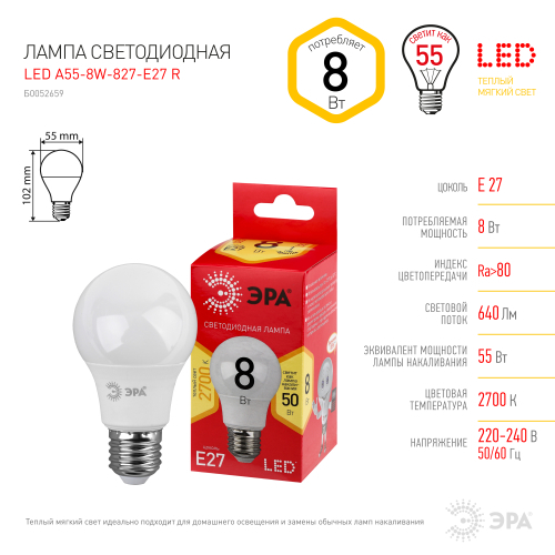Эта светодиодная лампа ЭРА Серии Бюджет - современный, качественный и доступный источник света. Позволяет экономить до 90% электроэнергии по сравнению с лампой накаливания с аналогичным световым потоком. Светит теплым белым светом, который максимально приближен к естественному дневному. Идеальна для ежедневного применения в быту. Мгновенное включение. Ровное освещение. Можно использовать как с люстрами, так и со светильниками, в том числе настольными и бра.