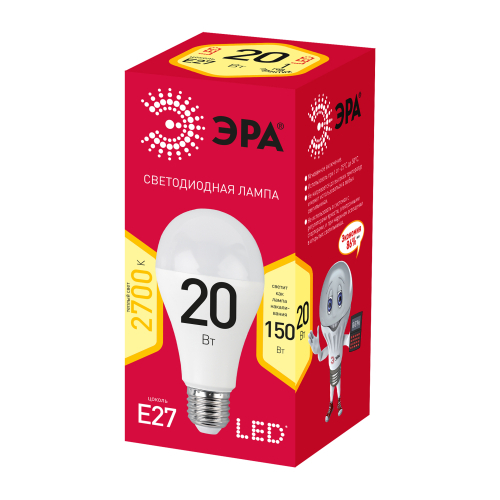 Бытовая светодиодная лампа ЭРА Серии Бюджет, создаёт яркое ровное освещение и экономит до 90% электроэнергии по сравнению с лампой накаливания с аналогичным световым потоком. Светит теплым светом с жёлтым оттенком - такая цветовая температура эффективна для отдыха и уютной атмосферы в доме. Используется в потолочных, настенных, настольных светильниках, в люстрах и бра. Мгновенно включается и не нагревается.