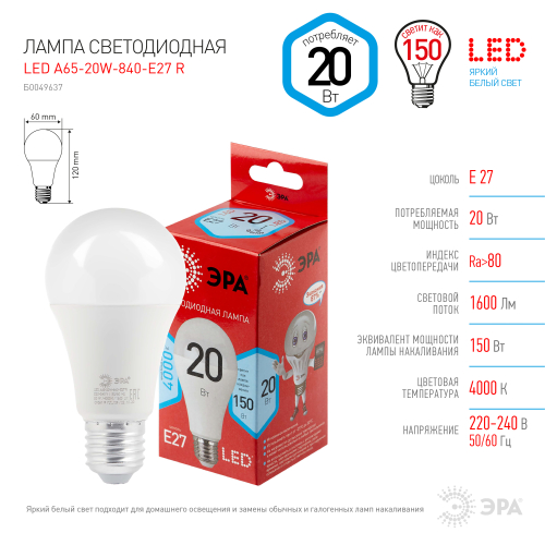 Эта светодиодная лампа ЭРА Серии Бюджет - современный, качественный и доступный источник света. Позволяет экономить до 90% электроэнергии по сравнению с лампой накаливания с аналогичным световым потоком. Светит ярким белым светом, который максимально приближен к естественному дневному. Идеальна для ежедневного применения в быту. Мгновенное включение. Ровное освещение. Можно использовать как с люстрами, так и со светильниками, в том числе настольными и бра.