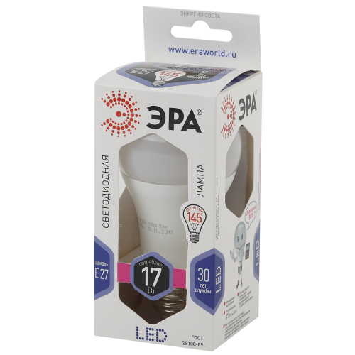 Экономичная светодиодная лампа ЭРА Серии Стандарт с отличными характеристиками для установки в люстры и все типы бытовых светильников - потолочные, настольные, бра. Бережёт электроэнергию, ярко светит, имеет долгий срок службы. Цветовая температура - холодный белый свет. Такое освещение бодрит, повышает работоспособность. Этот современный источник света создаёт комфортное и безопасное для глаз освещение.