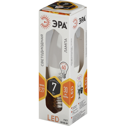 Бытовая светодиодная лампа ЭРА Серии Стандарт, создаёт яркое ровное освещение и экономит до 90% электроэнергии по сравнению с лампой накаливания с аналогичным световым потоком. Светит теплым светом с жёлтым оттенком - такая цветовая температура эффективна для отдыха и уютной атмосферы в доме. Используется в потолочных, настенных, настольных светильниках, в люстрах и бра. Мгновенно включается и не нагревается.