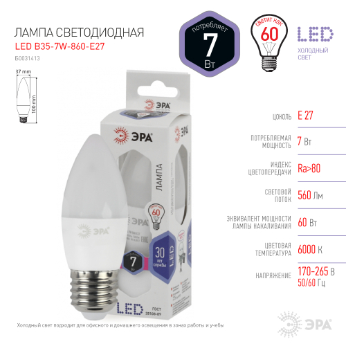 Экономичная светодиодная лампа ЭРА Серии Стандарт с отличными характеристиками для установки в люстры и все типы бытовых светильников - потолочные, настольные, бра. Бережёт электроэнергию, ярко светит, имеет долгий срок службы. Цветовая температура - холодный белый свет. Такое освещение бодрит, повышает работоспособность. Этот современный источник света создаёт комфортное и безопасное для глаз освещение.