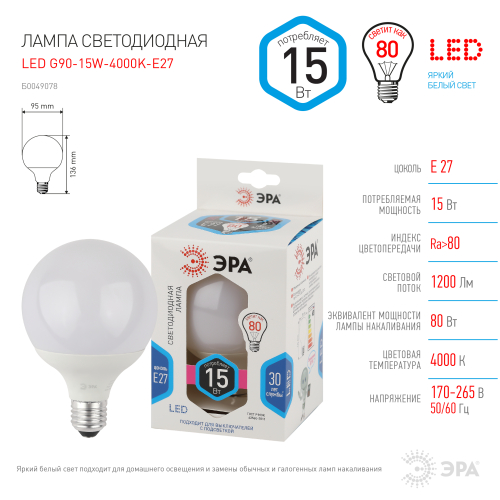 Эта светодиодная лампа ЭРА Серии Стандарт - современный, качественный и доступный источник света. Позволяет экономить до 90% электроэнергии по сравнению с лампой накаливания с аналогичным световым потоком. Светит ярким белым светом, который максимально приближен к естественному дневному. Идеальна для ежедневного применения в быту. Мгновенное включение. Ровное освещение. Можно использовать как с люстрами, так и со светильниками.