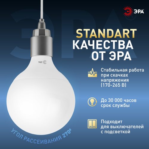 Cветодиодные лампы серии Standart являются высокотехнологичным продуктом. Отличительными особенностями данной серии являются: широкий ассортимент, который призван удовлетворить любые запросы, увеличенная гарантия качества, работа в широком диапазоне напряжений, корректная работа с выключателем с подсветкой и отсутствие пульсаций.