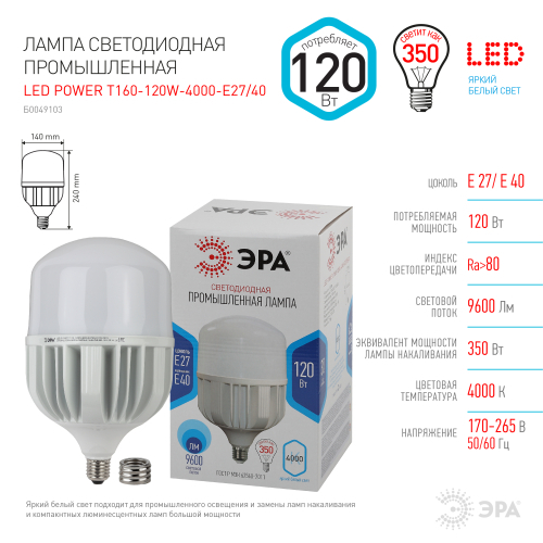 Лампа светодиодная ЭРА Серии Стандарт для освещения производственных, торговых и подсобных помещений. Отличается высокой мощностью, грамотно продуманной системой охлаждения и широким выбором цветовых температур