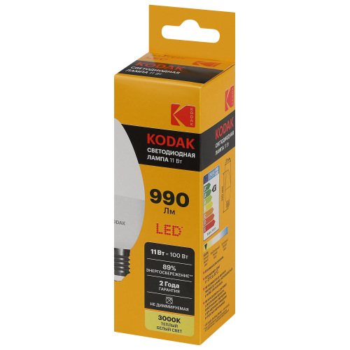Представляем Вашему вниманию новинку от легендарного бренда Kodak - светодиодные лампочки, которые украсят Ваш интерьер и наполнят дом светом! Лампы всемирно известной марки отличаются традиционно высоким качеством, продолжительным сроком службы, эксплуатационной надежностью, и, конечно, доступной ценой. LED KODAK B35-11W-830-E27 - лампочка с цоколем E27, отлично подойдет для самых разных целей: ее можно установить в люстру или светильник на кухне, в спальне, детской комнате или коридоре. Мощность лампы составляет 11Вт, эквивалент лампе накаливания - 100Вт. Цветовая температура - 3000К - теплый свет, подобный к свечению ламп накаливания. Такой свет идеально подойдет для спальни или детской комнаты, благодаря теплому свету помещение наполнится атмосферой тепла и уюта. Диаметр лампочки составляет 37мм, а высота - 110мм. Корпус устройств выполнен из высококачественных алюминия и термо пластика, что делает использование источников света абсолютно безопасным. Невозможно оставить без внимания неоспоримые преимущества технологии, в которой выполнены лампы: LED (светодиоды KODAK). В первую очередь, это высокая светоотдача и низкое энергопотребление: эти источники света тратят в 10 раз меньше, чем лампы накаливания. Срок службы - 35000 часов - более чем 3,5 года постоянного свечения. Еще одно преимущество - светодиоды не содержат в себе ртути и прочих вредных металлов. Купив лампу от Kodak, Вы сможете быть уверены в высоком качестве продукта и безопасности своих близких.