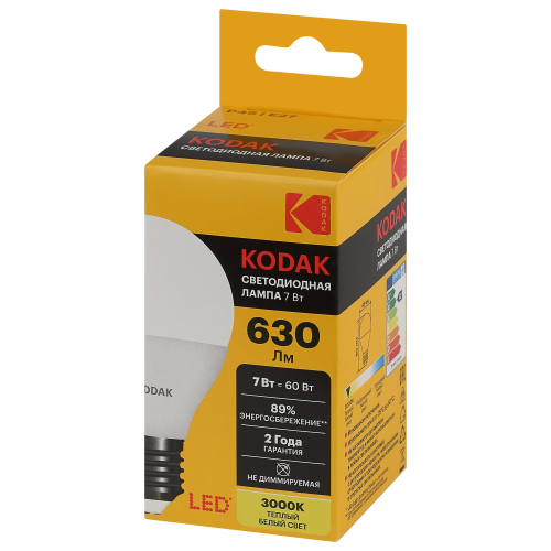 Представляем Вашему вниманию новинку от легендарного бренда Kodak - светодиодные лампочки, которые украсят Ваш интерьер и наполнят дом светом! Лампы всемирно известной марки отличаются традиционно высоким качеством, продолжительным сроком службы, эксплуатационной надежностью, и, конечно, доступной ценой. LED KODAK P45-7W-830-E27 - лампочка с цоколем E27, отлично подойдет для самых разных целей: ее можно установить в люстру или светильник на кухне, в спальне, детской комнате или коридоре. Мощность лампы составляет 7Вт, эквивалент лампе накаливания - 60Вт. Цветовая температура - 3000К - теплый свет, подобный к свечению ламп накаливания. Такой свет идеально подойдет для спальни или детской комнаты, благодаря теплому свету помещение наполнится атмосферой тепла и уюта. Диаметр лампочки составляет 45мм, а высота - 80мм. Корпус устройств выполнен из высококачественных алюминия и термо пластика, что делает использование источников света абсолютно безопасным. Невозможно оставить без внимания неоспоримые преимущества технологии, в которой выполнены лампы: LED (светодиоды KODAK). В первую очередь, это высокая светоотдача и низкое энергопотребление: эти источники света тратят в 10 раз меньше, чем лампы накаливания. Срок службы - 35000 часов - более чем 3,5 года постоянного свечения. Еще одно преимущество - светодиоды не содержат в себе ртути и прочих вредных металлов. Купив лампу от Kodak, Вы сможете быть уверены в высоком качестве продукта и безопасности своих близких.