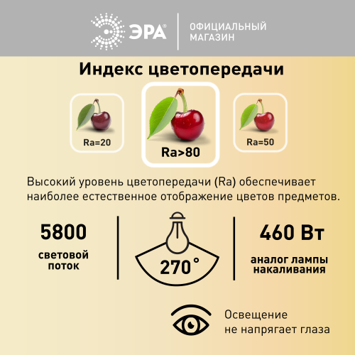 Светодиодная лампа повышенной мощности ЭРА RED LINE LED POWER T120-60W-4000-E27/E40 R идеальна для качественного и экономичного освещения пространств с большой площадью производственных, торговых, выставочных, складских, подсобных помещений. Светит ярко, как лампа накаливания 460 Вт, при этом потребляет мощность всего 60 Вт. Экономит до 90% электроэнергии. Создаёт комфортное для глаз освещение нейтрального белого цвета. Не нагревается, включается мгновенно, не мигает. Размеры: 198 х 117 мм. Цоколь Е27/E40