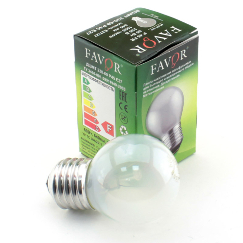 Лампа накаливания вольфрамовая для бытового и аналогичного общего освещения. Шарообразная лампа находит свое применение там, где использование традиционной лампы невозможно из-за технических возможностей светильника и где внешний вид лампы имеет большое значение. Привлекательная форма и компактность этой лампы делает ее поистине универсальной в применении и незаменимой в небольших декоративных светильниках, торшерах и бра, всё более популярных в последнее время. Мягкий рассеянный свет матированной колбы лампы создает в помещение уют и комфорт, придает люстрам и бра элегантный классический вид.