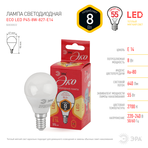 Бытовая светодиодная лампа ЭРА Серии Бюджет, создаёт яркое ровное освещение и экономит до 90% электроэнергии по сравнению с лампой накаливания с аналогичным световым потоком. Светит теплым светом с жёлтым оттенком - такая цветовая температура эффективна для отдыха и уютной атмосферы в доме. Используется в потолочных, настенных, настольных светильниках, в люстрах и бра. Мгновенно включается и не нагревается.