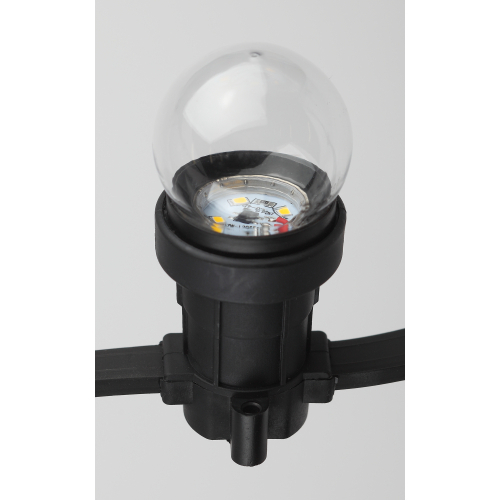 Декоративная светодиодная лампа ЭРА "Белт-лайт" с цоколем Е27 и прозрачной колбой шар (Р45). Мощность - 1 Вт. Светит тёплым белым светом. Идеально подходит для использования в уличной гирлянде-конструкторе ЭРА "Белт-лайт", дающей возможность самостоятельного дизайна и монтажа праздничной иллюминации. В составе гирлянды-конструктора позволяет создавать уникальное праздничное освещение по индивидуальным параметрам и для конкретных задач. Вы сами выбираете длину подсветки, цвет ламп и расстояние между источниками света! Это идеальное решение для декора фасадов зданий, оформления витрин, общественных пространств на свежем воздухе. Другие элементы гирлянды-конструктора: патрон Б0049176, кабель Б0049175, набор для подключения (шнур питания с вилкой + коннектор) Б0049180, коннектор Б0049179, заглушка Б0049181, заглушка с крюком Б0049182. В ассортименте ЭРА LED-лампы "Белт-лайт" E27 разных цветов: синие, зелёные, красные, жёлтые, а также прозрачные. Колбы изготовлены из лёгкого ударопрочного пластика, такие лампы удобно транспортировать, использовать и хранить. Цоколь - из алюминия. Лампы ЭРА "Белт-лайт" универсальны: подходят к любому светотехническому прибору с патроном для Е27.