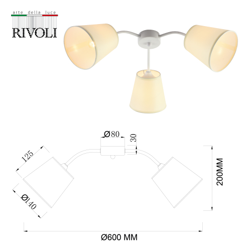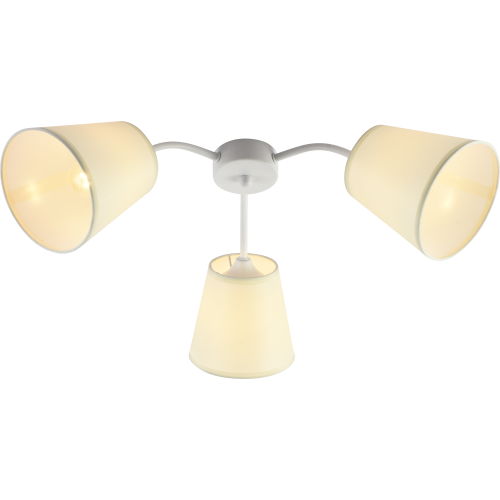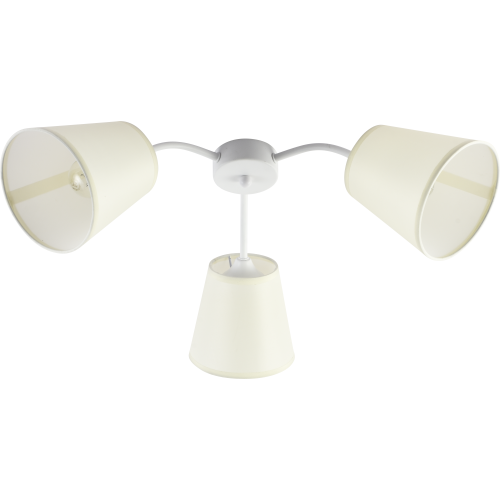 Белая 3-рожковая люстра с тканевыми плафонами - Rivoli Aimee (арт. 9162-303). Люстра в гостиную, люстра в спальню, люстра в детскую, люстра в кабинет. Лаконичный металлический корпус со стойким порошковым покрытием. Абажурная ткань плафонов допускает влажную уборку, не накапливает пыль. Свет ламп люстры направлен в разные стороны, что обеспечит равномерным освещением. Источники света в данную люстру – лампы Е27 60 Вт. Освещаемая площадь – до 9 м2.