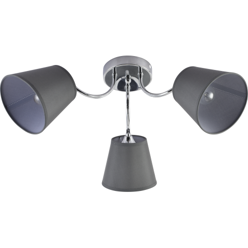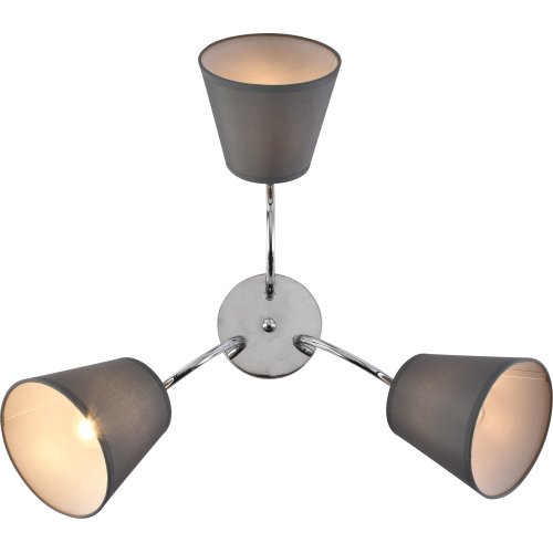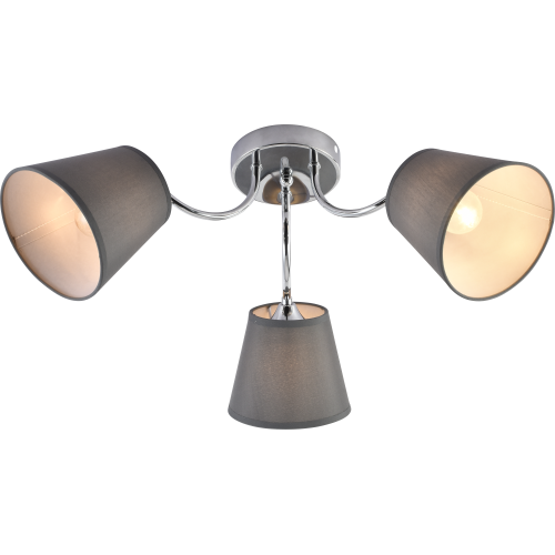 Данная люстра с тремя тканевыми серыми плафонами освещает площадь до 9 м2. Прочный и лёгкий металлический корпус, классическая форма плафонов, интеллигентный сдержанный дизайн.