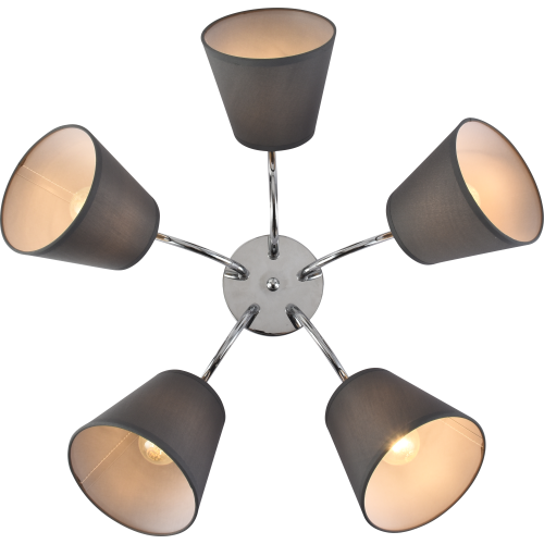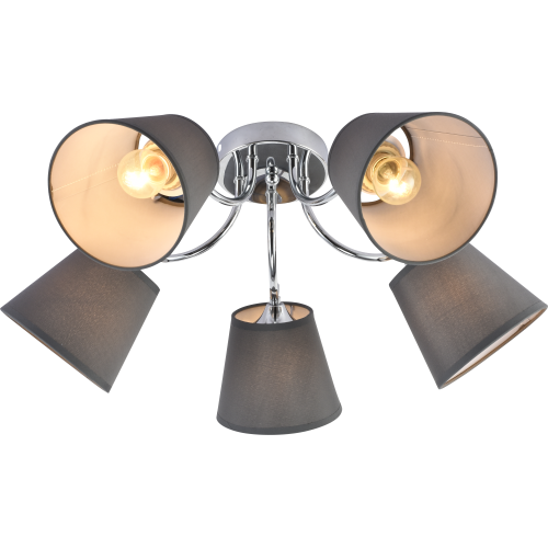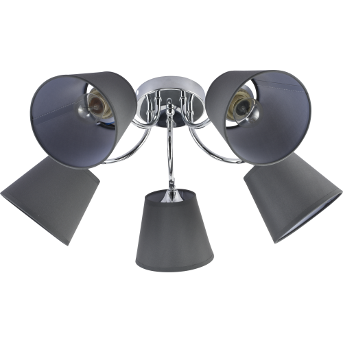 Люстра Rivoli Alexa (арт. 9163-305) в сером цвете, с хромированной арматурой, с пятью плафонами из абажурной ткани. Люстра итальянского дизайна по доступной цене. Коллекцию Alexa Rivoli дополняет люстра потолочная с тремя плафонами – арт. 9163-303. Для люстры Alexa необходимо купить лампы Е27 60 Вт – 5 шт. Современная люстра Rivoli Alexa качественно освещает площадь до 15 м2. Такая классическая интеллигентная люстра подойдёт в гостиную, на кухню, в спальню. Люстра Alexa станет украшением пространства и удачно дополнит множество стилей – модерн, классика, современная классика, скандинавский, кантри, американский. Направленные в разные стороны плафоны люстры потолочной Rivoli Alexa равномерно распределяют свет.