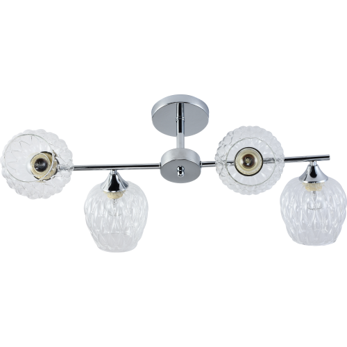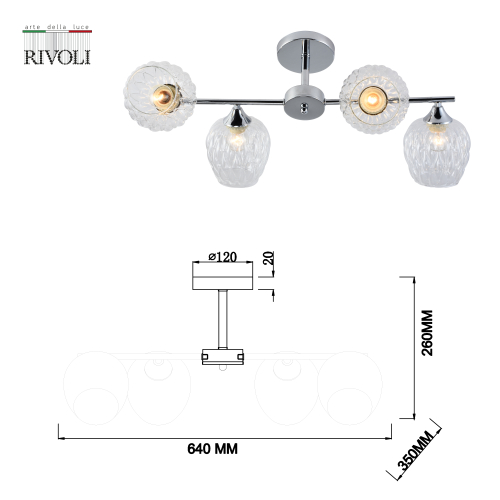 Люстры потолочные Rivoli Arlene (арт. 3139-304) имеют 4 выдувных плафона из дизайнерского стекла с объемным узором. Стекло люстры Arlene - прозрачное, отлично пропускает свет. Освещаемая площадь люстры - до 12 м2. Лаконичная арматура с трендовым хромированным покрытием отличается сдержанной геометричной формой. Прозрачные плафоны расположены на тонкой металлической рейке. Люстра Arlene - отличная покупка на невысокий потолок.