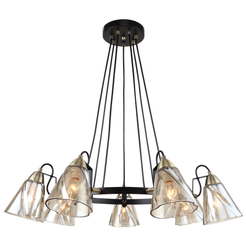 Лаконичный металлический обруч люстры подвесной Cathy Rivoli объединяет 7 фигурных стеклянных плафонов с тёплой тонировкой. Смягчая блики и направляя свет вниз, люстры потолочные Cathy создают комфортное для глаз освещение. Рекомендуем купить люстры Rivoli Cathy c 7 плафонами в гостиную площадью до 21 м2. Эти люстры подвесные на тросах отлично подойдут в загородный дом.
