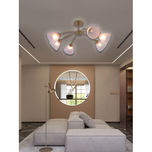 Коллекция светильников медного цвета включает люстры на 6 и 8 рожков с цоколем E27 и бра с встроенным выключателем. Максимальная мощность лампы 60Вт (в комплект не входит). Стильный и функциональный выбор для любого интерьера.