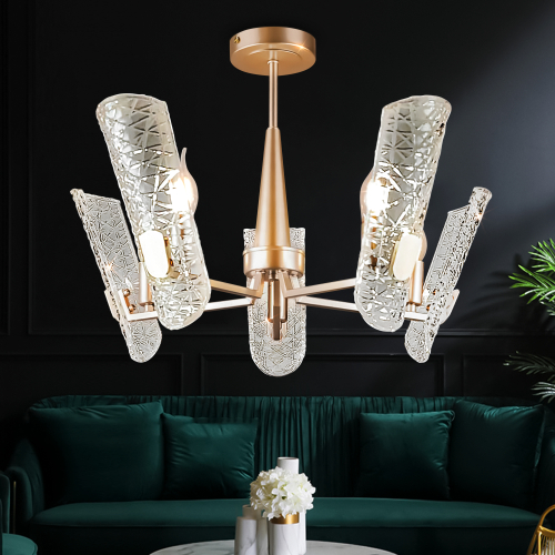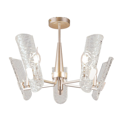 Рожки люстры Dolores направлены вверх и напоминают свечные канделябры. Стекло люстры на кухню Dolores Rivoli отличается аккуратным объемным рисунком. В геометричности узора на стекле люстры красиво играют световые лучи. Металл этой современной люстры имеет стойкое гальваническое покрытие. Люстры Dolores подходят на натяжной потолок. В коллекции есть аналогичные люстры под 8 ламп - арт. 4087-308.