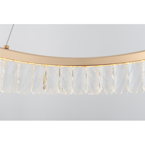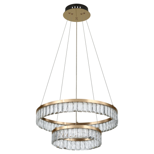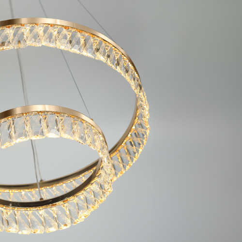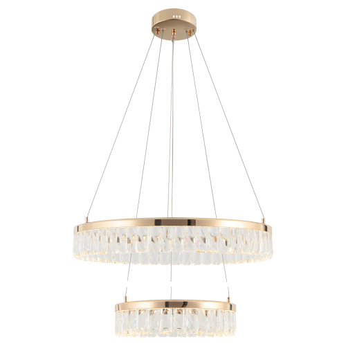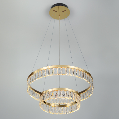 Дизайнерская двухъярусная LED-люстра Rivoli Erika (арт. 6131-105) с оригинальными хрустальными элементами — элегантное современное решение для интерьера, которое гармонично сочетает стиль и функциональность. Мощность люстры составляет 68 Вт, а её два плафона-кольца, выполненные в золотистом оттенке, создают мягкое и уютное освещение благодаря встроенным светодиодам, излучающим тёплый белый свет (3000 К).