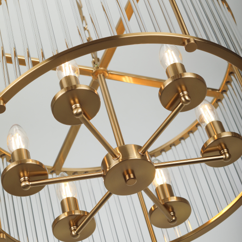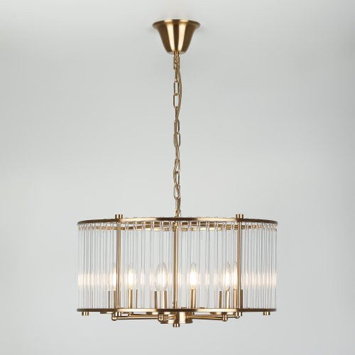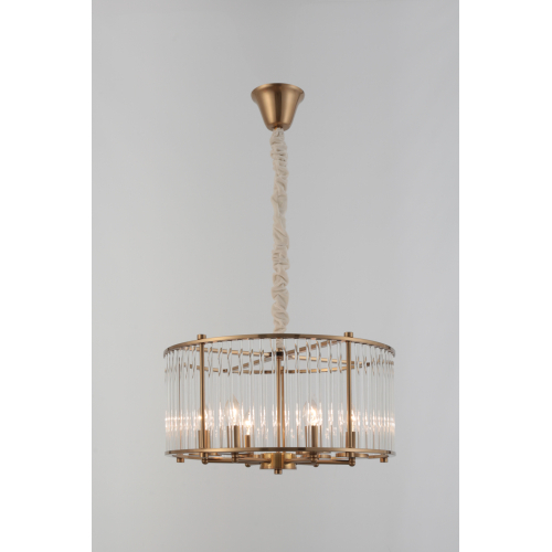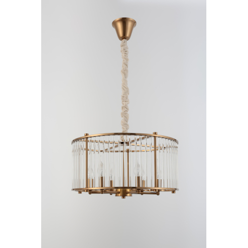 Надёжная металлическая люстра имеет стойкое окрашивание в красивый медный оттенок. Диаметр люстры — 500 мм. Она прекрасно впишется в стили лофт, классика и многие другие, соответствуя современным европейским трендам оформления интерьеров. Необычный декор в виде прозрачных стеклянных трубок эффектно пропускает свет ламп. Люстра Rivoli Erin станет ярким акцентом в любом помещении, создаст атмосферу уюта и стиля. Выбор профессиональных дизайнеров интерьеров.