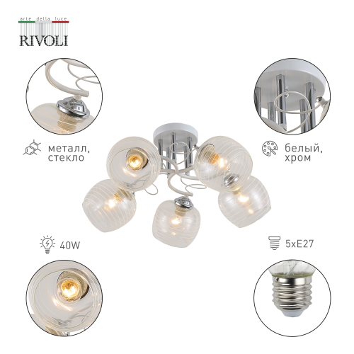 Estefany - люстры потолочные, созданные итальянским брендом Rivoli как универсальное решение преобразить стандартное жилое помещение. Эти красивые люстры освещают помещение площадью от 15 м² и используются с 5 популярными лампочками Е27 мощностью 40 Вт. Купить Rivoli Estefany стоит в качестве люстры на кухню, люстры в спальню, люстры в гостиную.