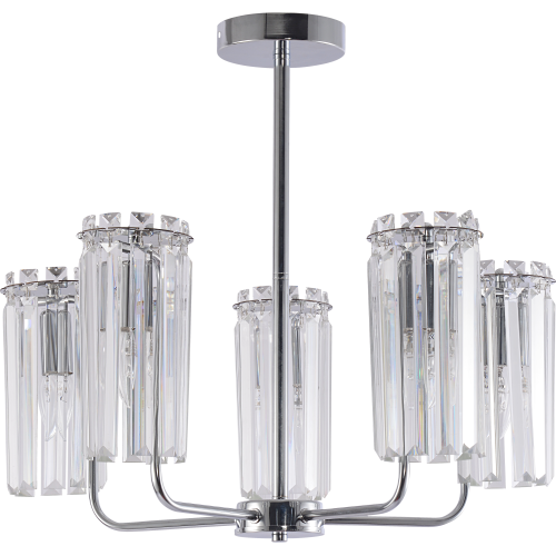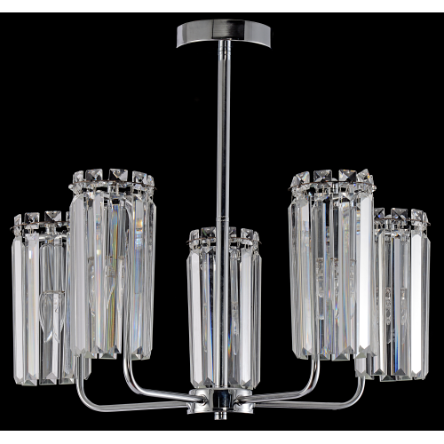 Коллекция светильников в цвете хром включает люстры на 5 и 7 рожков с цоколем E14 и бра с встроенным выключателем. Максимальная мощность лампы 40Вт (в комплект не входит). Плафоны из кристаллов создают утонченную атмосферу в интерьере.