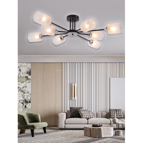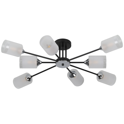 Серия черных потолочных люстр на 6 и 8 рожков с цоколем E27 (макс. 60Вт) — элегантный и современный выбор для вашего интерьера. Дизайн в виде рожков разной длины создает эффектное освещение и стильную атмосферу.