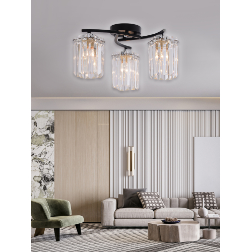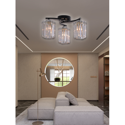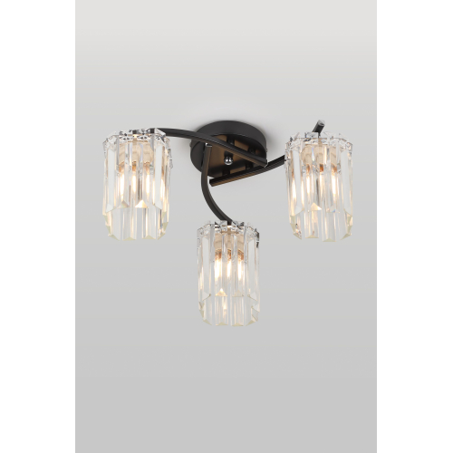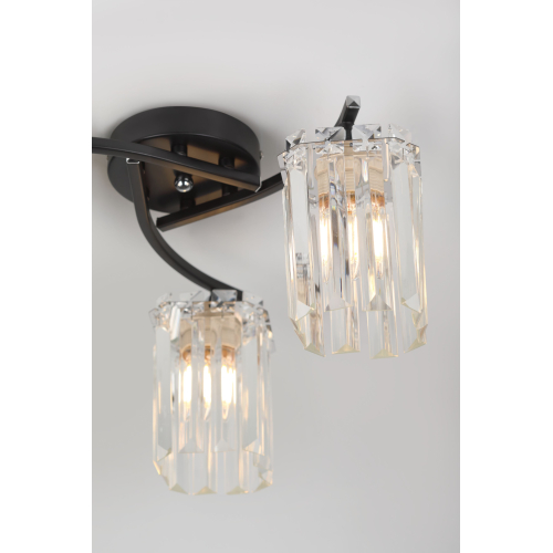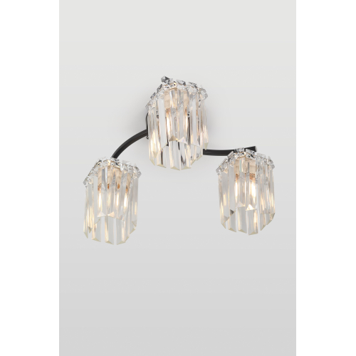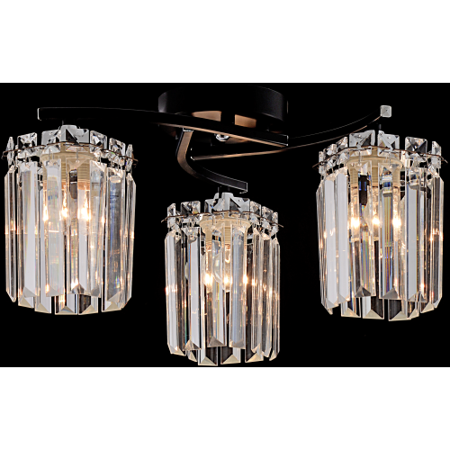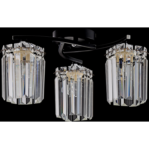 Коллекция черных светильников включает люстры на 3 и 6 рожков с цоколем E27 и бра с встроенным выключателем. Максимальная мощность лампы 60Вт (в комплект не входит). Плафоны из кристаллов создают утонченную атмосферу в интерьере.