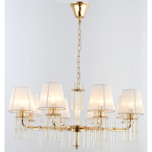 Цвет люстры Lilith - французское золото - теплый и уютный. Лаконичные формы арматуры подходят для современных интерьеров, стремящихся к минимализму. Плафоны люстры из прочной прозрачной ткани хорошо пропускают свет. Люстры на потолок Rivoli Lilith c 8 плафонами освещают площадь до 24 м2. Люстры под 8 ламп Е14 40 Вт подойдут для основного освещения гостиной, спальни, детской, кабинета, квартиры-студии. Декоративные элементы отличаются выверенной формой, простотой и высокой прозрачностью под хрусталь. Люстры в спальню Lilith Rivoli помогут создать интерьер в классическом стиле, в замковом стиле, в стиле модерн, эклектика. Идеальны для загородного дома, холла гостиниц, ресторанов.