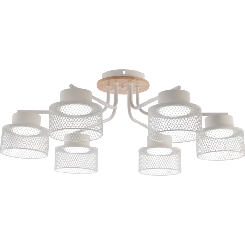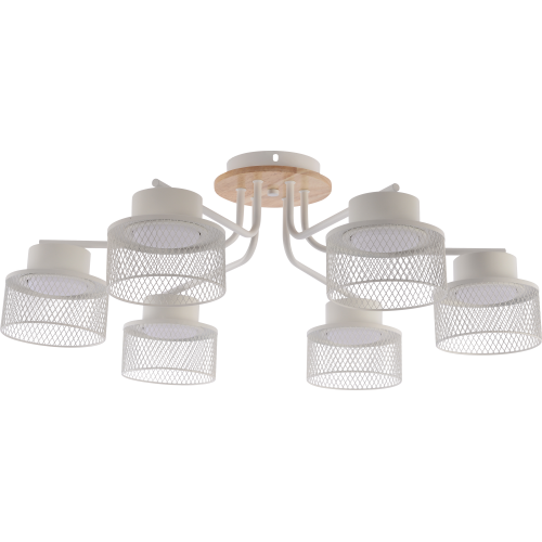 Коллекция белых светильников с цоколем GX53 (мощность 15Вт) — стильное сочетание современного дизайна и природной текстуры. Сетчатые плафоны создают яркое освещение, а элементы натурального дерева добавляют уюта в атмосферу интерьера. Серия представлена светильниками на 6 и 8 рожков и бра с встроенным выключателем.