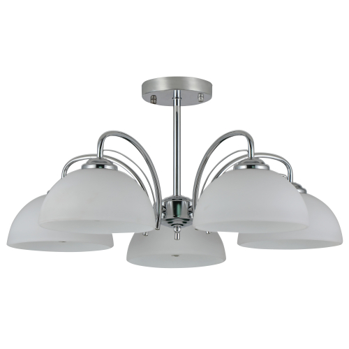 Потолочная люстра на штанге в хромированном металлическом корпусе - Rivoli Tina (арт. 9173-305). Люстра на потолок имеет 5 стеклянных матовых плафонов, в которые необходимо вкрутить лампы Е27 40 Вт. Плафоны этой универсальной современной люстры имеют форму широкого колокольчика, дают много света. Освещаемая площадь 5-рожковой люстры Tina итальянского бренда Rivoli – до 15 м2. Коллекцию дополняет модель с освещаемой площадью до 9 м2 – люстра потолочная на штанге с 3 плафонами (арт. 9173-303). А также бра настенное – арт. 9173-401. Хромированные люстры с белыми плафонами – популярное решение для организации основного освещения в жилой комнате.