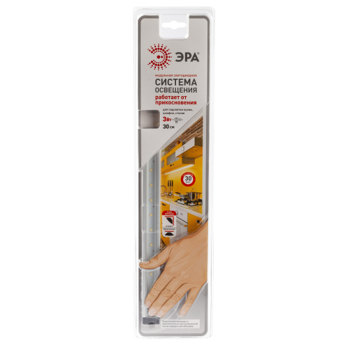 Светодиодный модуль с управлением от датчика прикосновения с возможностью шаговой регулировки яркости (6%, 50%, 100%). Мощность 5Вт. Срок службы 30000 часов. Напряжение питания 12В DC. Цветовая температура 4000K. Комплектация: светильник, источник питания, крепежные клипсы, двусторонний скотч