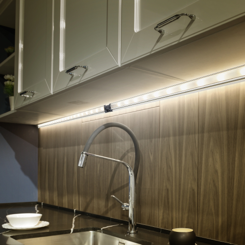 Светодиодный модуль с управлением от датчика прикосновения, мощность 5Вт. Срок службы 30000 часов. Напряжение питания 12В DC. Цветовая температура 4000K. Комплектация: светильник, источник питания, крепежные клипсы, двусторонний скотч.