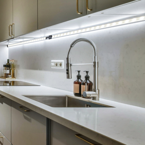 Встроенная сенсорная система на основе инфракрасного датчика позволяет управлять освещением без использования стандартных выключателей. Сенсор расположен на боковой грани по центру панели. Можно разместить светильник в любом удобном месте, а сенсор поверн