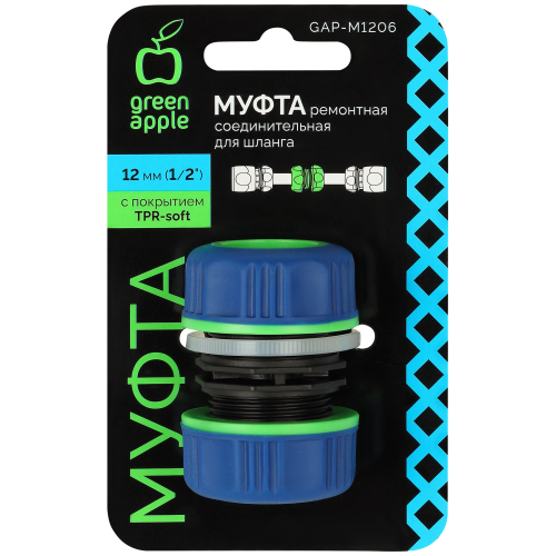 Ремонтная соединительная муфта Green Apple предназначена для быстрого ремонта поврежденного шланга. После удаления поврежденного участка новые концы шланга легко соединяются с помощью муфты.