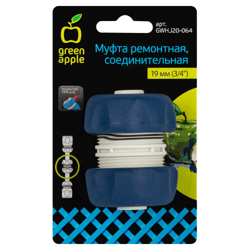 Ремонтная соединительная муфта Green Apple предназначена для быстрого ремонта поврежденного шланга. После удаления поврежденного участка новые концы шланга легко соединяются с помощью муфты. Особенности: Покрытие ручки TPR soft. Для шланга 19 мм (3/4"). Характеристики: Длина: 6.2 см.