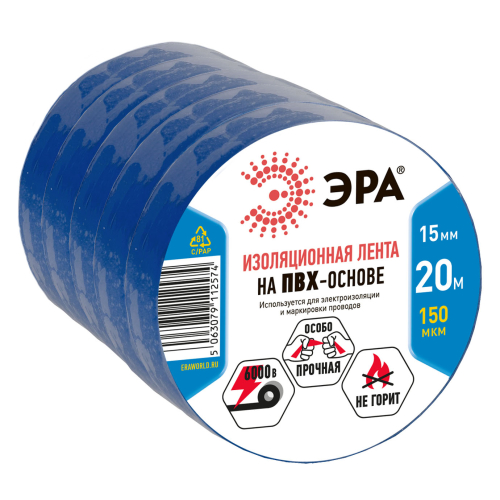 Изолента ЭРА изготавлена из высококачественного негорючего ПВХ. Представляет собой расходный материал для проведения бытовых и строительных электромонтажных работ. Используется для электроизоляции, в целях маркировки, а также для защиты от механических повреждений, воздействия влаги и пр. Устойчива к воздействию УФ-лучей, влажности, истиранию, коррозии металлов, старению. Клеевой слой на резиновой основе. Изолента выпускается в рулонах по 20 м. Семь вариантов цветов синий, белый, красный, желтый, зеленый, черный, желто-зеленый.