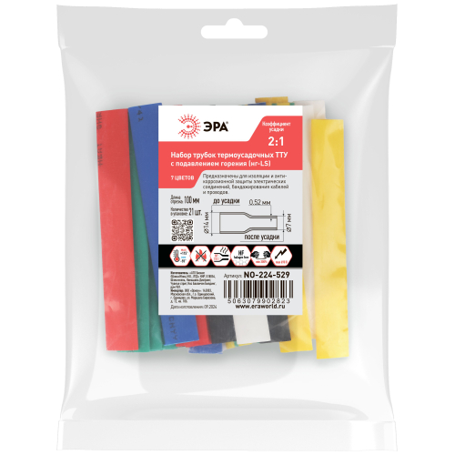 Общепромышленные термоусадочные трубки ТТУ нг-LS в розничных наборах представляют собой универсальное решение для изоляции и маркировки. Трубки изготавливаются методом экструзии из специального состава полиолефина с добавлением антипиренов, после чего нарезаются на отрезки по 10 см. Коэффициент термоусадки 2:1 обеспечивает надежную фиксацию и защиту, а широкая цветовая гамма и разнообразие диаметров позволяют подобрать оптимальный вариант для различных задач.