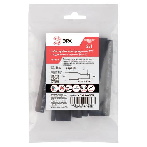 В состав наборов входят трубки следующих цветов: чёрный; 18 штук по 100 мм: 1,5/0,75 – 2 штуки; 2,5/1,25 – 2 штуки; 3,5/1,75 – 2 штуки; 4/2 – 2 штуки; 5/2,5 – 2 штуки; 6/3 – 2 штуки; 8/4 – 2 штуки; 10/5 – 2 штуки.