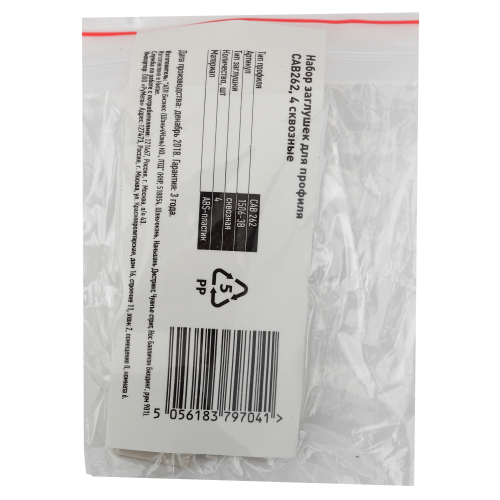 Набор заглушек для профиля CAB262, 4 сквозные. Выполнены из негорючего пластика.