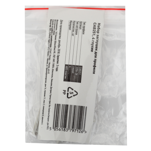 Набор заглушек для профиля CAB251, 4 глухие. Выполнены из негорючего пластика.