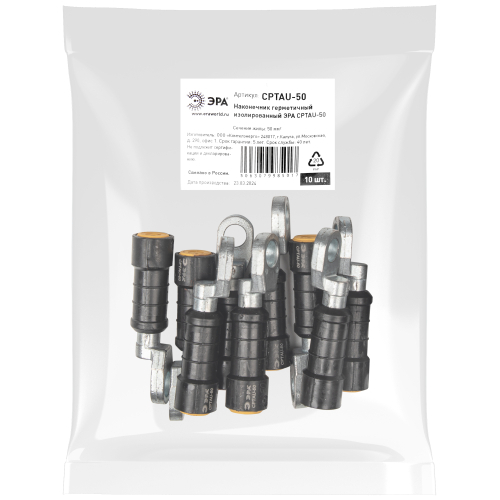 Изолированный наконечник ЭРА CPTAU-50 предназначен для оконцевания провода марки СИП-2 и СИП-4 при выполнении контактного присоединения к электроустановкам.