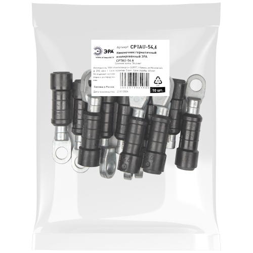 Изолированный наконечник ЭРА CPTAU-54,6 предназначен для оконцевания провода марки СИП-2 и СИП-4 при выполнении контактного присоединения к электроустановкам.