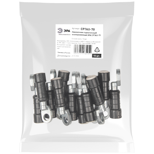 Изолированный наконечник ЭРА CPTAU-70 предназначен для оконцевания провода марки СИП-2 и СИП-4 при выполнении контактного присоединения к электроустановкам.