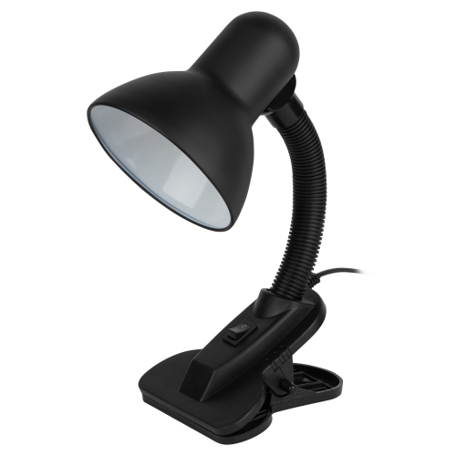 Светильник может использоваться с лампой накаливания, компактной люминесцентной лампой (КЛЛ) или светодиодной (LED) лампой. Прочная прищепка. Металлический плафон. Наклон и поворот плафона в любом направлении.